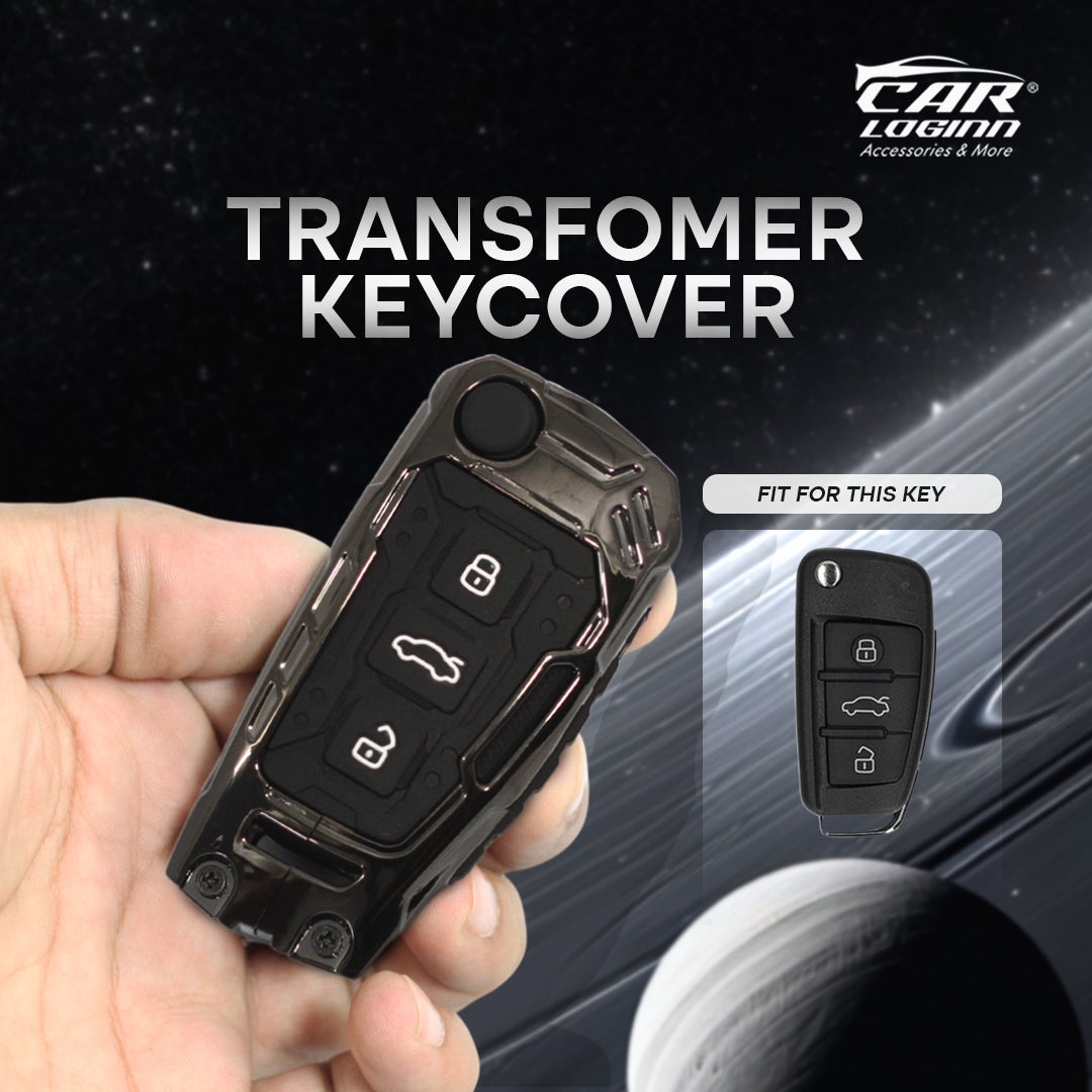 Premium Metal Black Transformer Series Soft Silicon Key Cover for Audi A3 | A6 | Q3 | Q5 | Q7 - Flip key