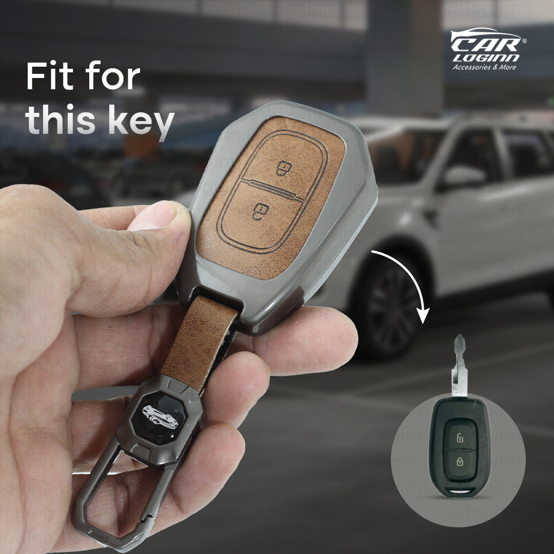 Metal Leather Key Cover Fit for Renault Triber | Kwid | Duster | Datsun redi-GO Flip key