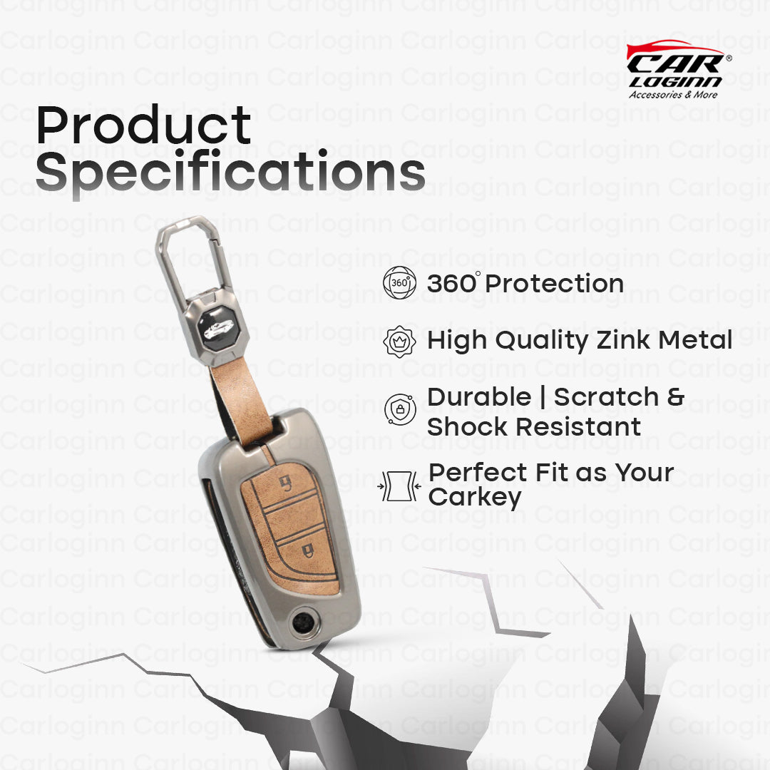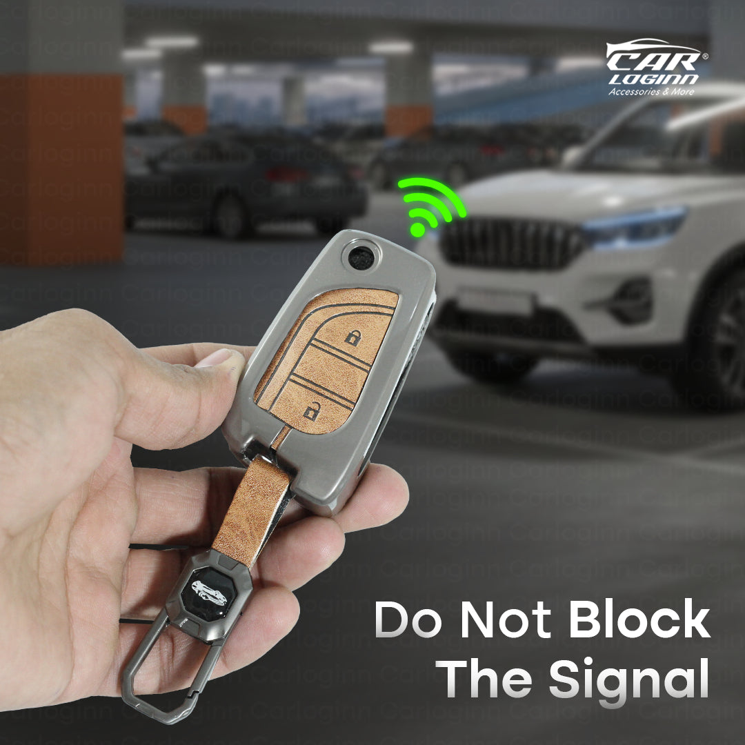 Metal Leather Car Key Case Fit for Toyota Innova Crysta | Corolla Altis Flip Key (2 Button)